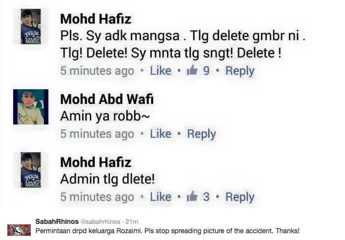 No details have been released on the severity of his injury, though images that have been spreading across social media suggests that Rozaimi could potentially be critically injured.