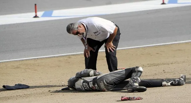 The accident occurred in the first round of the race, resulting in a chain-reaction involving other bikers as well, although the conditions of the others were not reported.