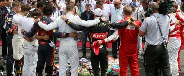 Prior to the race, all 20 drivers along with the Bianchi family formed a circle, standing arm in arm around their helmets, with Bianchi’s placed in the centre, as there was a minute of silence.