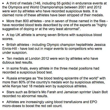 “I am very surprised by the numbers from the leak from the IAAF I am sure they will want to look at it closely to determine the source,” Reedie said.