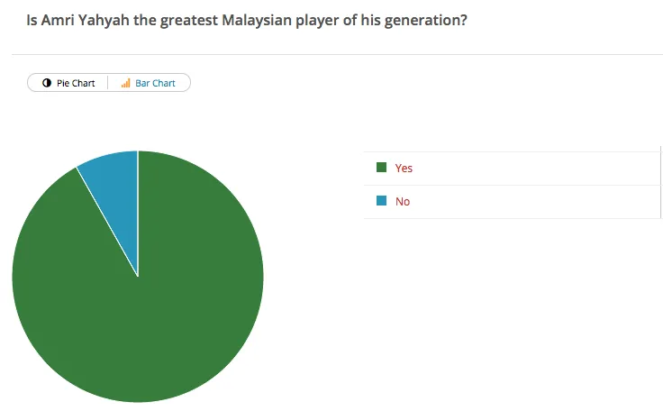 Only 8.15% said no, with some claiming that names like Indra Putra and Shukor Adan deserve it more than Amri does. Current Selangor defender S. Subramaniam, who has played with Amri as well as Indra, believes that the latter edges over the former.