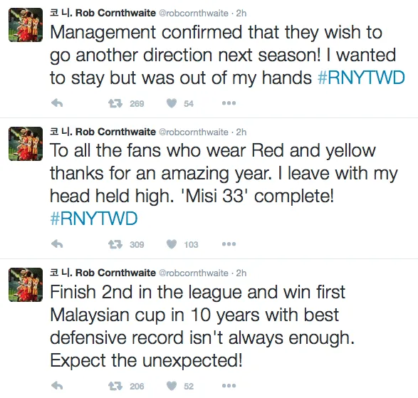 The news certainly comes as a surprising one, considering the role Rob played in Selangor’s impressive performances throughout the year.