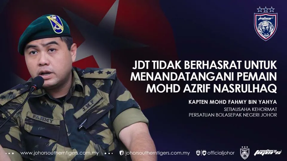 Johor DT have officially backed away from a deal to sign Selangor defender Azrif Nasrulhaq, before going on to release a public apology to the Red Giants.