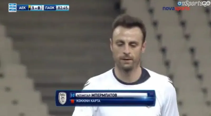 But last weekend, the Bulgarian forward got sent off for the first time in 14 years after a brutal elbow hit on an opposition defender during PAOK’s match against AEK Athens.