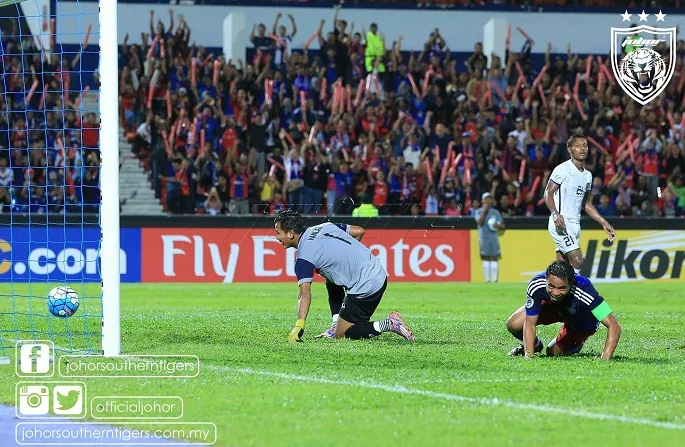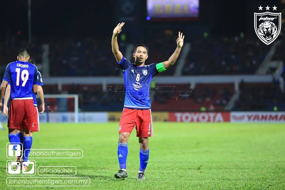 The AFC Cup tie started with a bang as captain Safiq Rahim scored the first goal of the game on the 5th minute, after his shot seemed to deflect off a defender, which left Ayeyawady’s goalkeeper Vanlal Hruala in no man’s land. Safiq Rahim started his run from the halfway line, dribbled past a few Ayeyawady players before unleashing a powerful strike from outside the box. The JDT fans in the stadium erupted with joy.