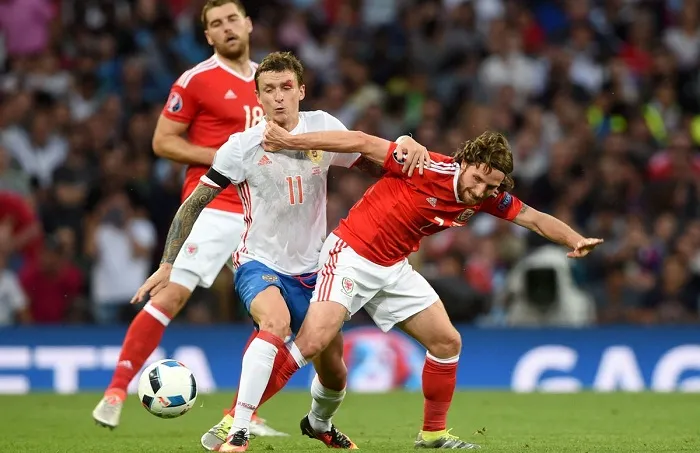 Leonid Slutsky made four changes from his side’s defeat to Slovakia with the likes of Dmitri Kombarov, Denis Glushakov, Pavel Mamaev and Roman Shirokov getting the nod ahead of their teammates because a win would have ensured qualification for the Russian contingent. Chris Coleman was in an upbeat mood and only chose to replace Hal Robson-Kanu with Burnley striker Sam Vokes as a draw was enough to send them into the knockout round.