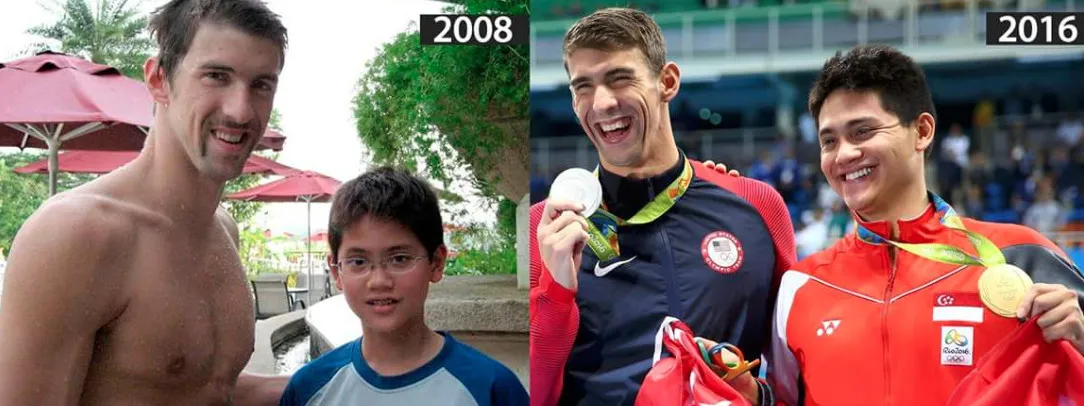 In 2008, Schooling was pictured in photo with Phelps, standing beside his idol when he was just 13 years-old. Eight years later, the Singaporean star officially ended Phelps’ bid to clinch 23 gold medals, by winning the 100m butterfly event, setting an Olympic record along the way.
