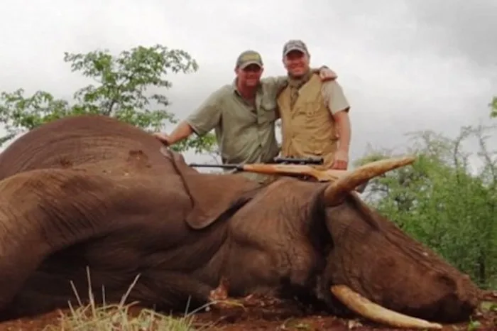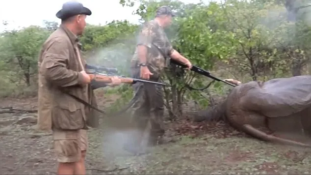 The Frenchman posted the photos from the his hunting trip on a charity website and claimed that he participated in the hunt because of overpopulation concerns. There is also a distressing video available, it shows the elephant wincing and crying in pain after taking a bullet in its head.