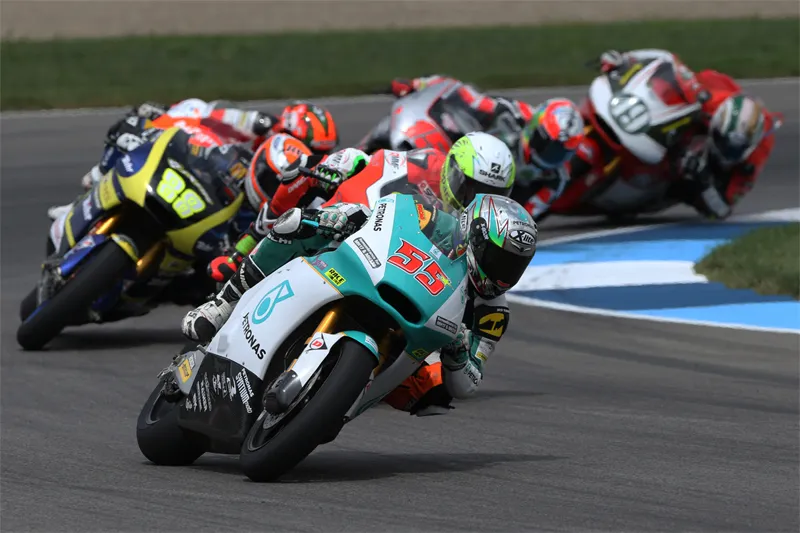 Penunggang Moto2 Malaysia, Hafizh Syahrin Abdullah mempamerkan tunggangan bertenaga untuk menamatkan kedudukan di lima tempat terbaik dalam perlumbaan Moto2 Grand Prix Shell Malaysia di Litar Antarabangsa Sepang pada hari Ahad.