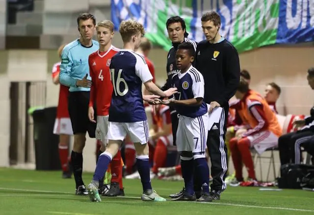 Pemain berusia 13 tahun itu dimasukkan pada minit ke-64 dalam perlawanan pasukan bawah 16 tahun Scotland menentang Wales di mana mereka seri 2-2.