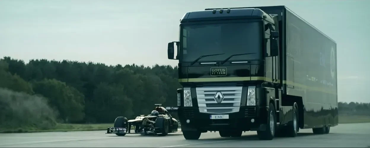 The latest video to go viral today shows a truck jumping over the Lotus F1 car, engineered by Mike Ryan, who is renowned for racing diesel-powered semis in the most uncommon places.