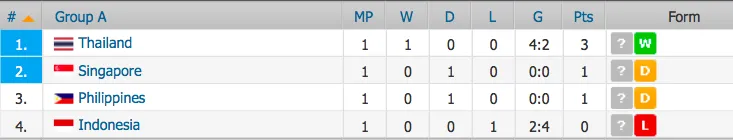 Here are the current standings after today’s AFF Suzuki Cup games: