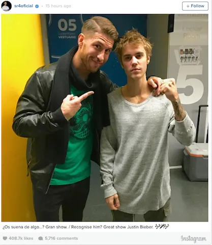 Pemain pertahanan Sepanyol itu telah menyiarkan gambar tersebut di akaun instagramnya dengan ayat: “Kenal dia? Persembahan hebat Justin Bieber.”