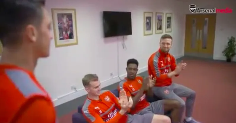 After his teammates, Shkodran Mustafi, Danny Welbeck and Rob Holding fail to get the coins into the Arsenal Chairity bucket, Ozil offers to help.