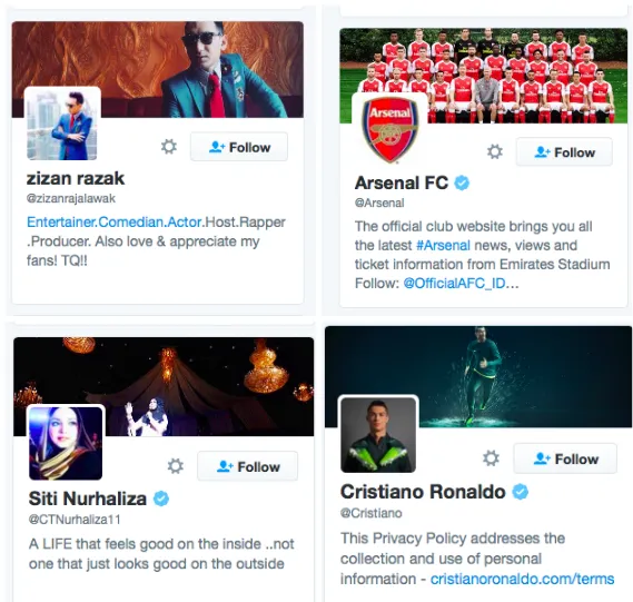 The 35-year old follows local singer Yuna, and Chinese-American singer-songwriter Wang Lee Hom on Twitter, amongst other badminton players all over the world.