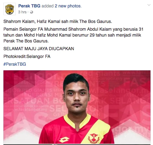 Shahrom dan Hafiz diumumkan menyertai skuad Perak bagi musim hadapan menerusi satu siaran di laman Facebook rasmi pasukan Perak.