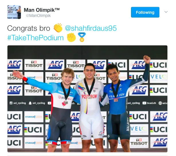 Shah Firdaus, who is currently based in Melbourne, Australia, also secured a bronze medal at the recent 2017 Asian Cycling Championship held in India when our track cycling king Azizulhasni Awang crashed out of the semi-finals.