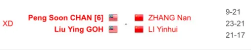 However, Malaysia’s mixed doubles pair Chan Peng Soon and Goh Liu Ying successfully made it through to the next round. They were defeated in the first round by China’s Zhang Nan and Li Yinhui 9-21. However, the pair bounced back and fought relentlessly in the subsequent two rounds as they sent the Chinese duo packing with 23-21 and 21-17.