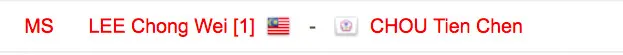 Mens’ doubles: Lee Chong Wei v Chou Tien Chen
