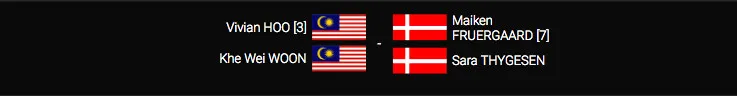 In the quarter finals, Vivian Hoo and Woon Khe Wei will be going up against Denmark’s Maiken Fruergaard and Sara Thygesen who are ranked 7 in the world.
