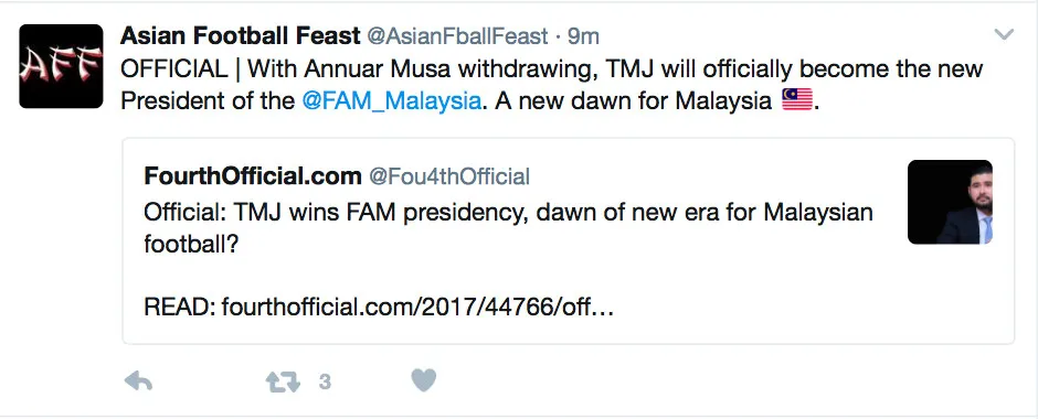 Since TMJ was the crowd favourite anyway, it goes without saying that Malaysian football fans were more than thrilled to find out that their favourite candidate has won!