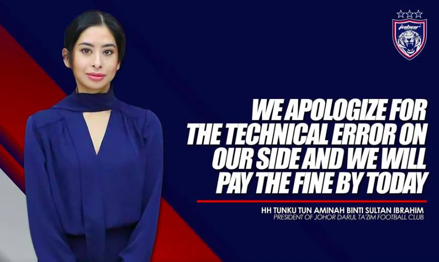 The apology was made by HH Tunku Tun Aminah Binti Sultan Ibrahim, President of Johor Darul Ta’zim Football Club.