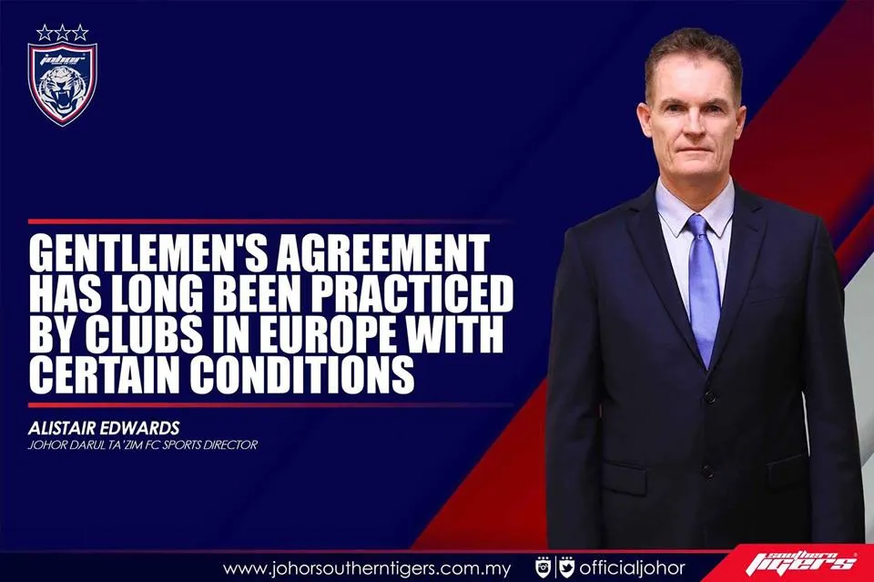 Dalam satu kenyataan di laman Facebook rasmi Johor Darul Ta’azim (JDT), Allistair menyatakan bahawa perjanjian tersebut atau sering disebut sebagai ‘Gentlement Agreement’ ini telah lama digunakan oleh kelab-kelab di Eropah.
