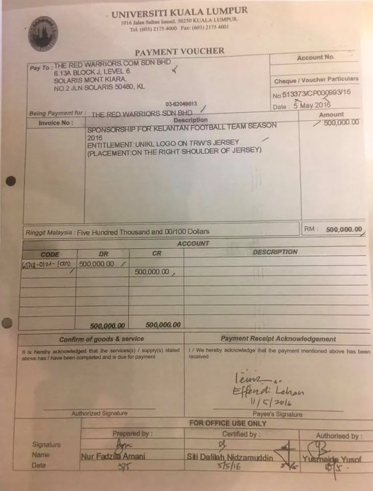 He also said that he was only in charge of the branding and marketing budget, to promote the Kelantan football team. He never did instruct anyone to use the funds, especially education funds, to sponsor the football team.