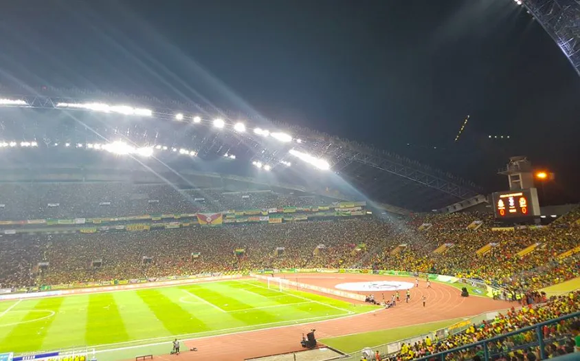 OH. MY. GOD. The stadium was already JAM-PACKED at 7.30 pm. All the green-yellow jersey bearers took up one half of the stadium, and the black-white jersey bearers on the other.