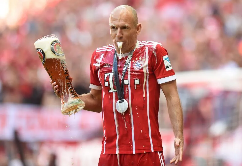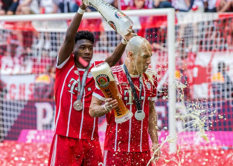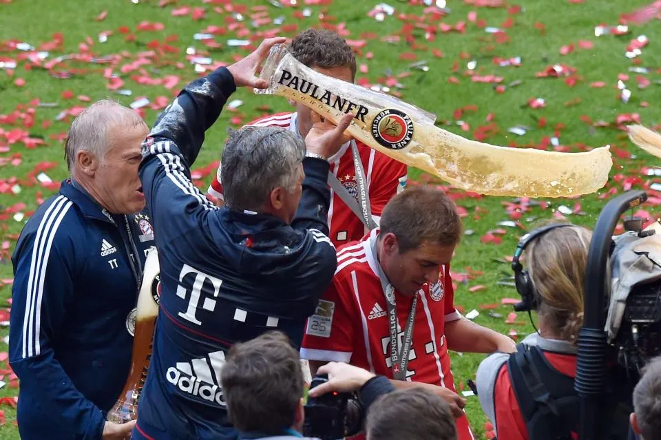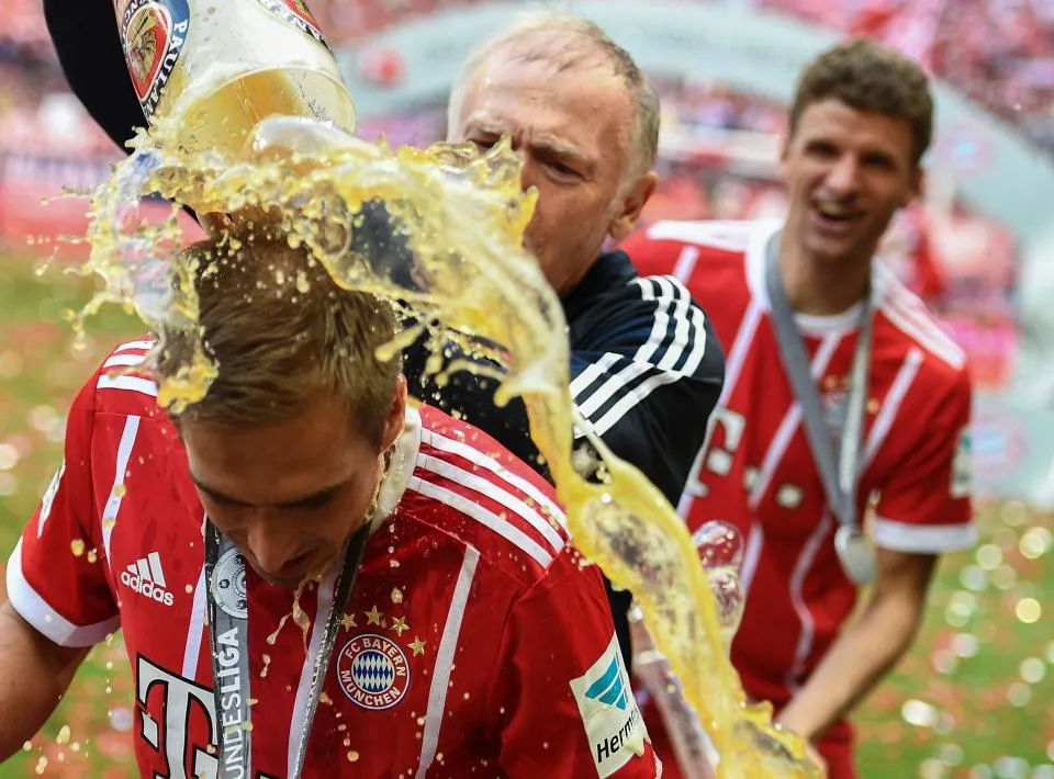 The boys from Bayern Munich celebrated in the most German way possible: with beer.
