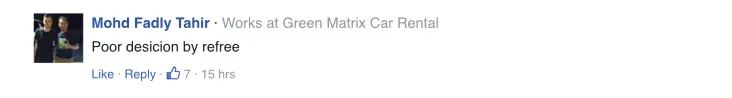 Consequently, Farizal Marlias lost his cool and angrily made his way towards the referee to question the penalty. His vehement protests was met with a red card, especially since he laid hands on the referee.