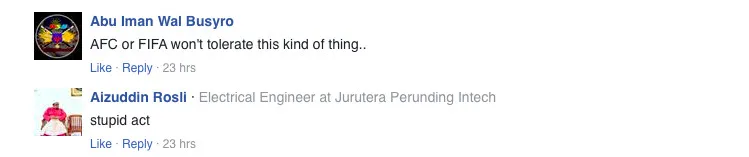 AFC’s secretary-general Dato’ Windsor Paul John said that he is still awaiting report from the match officials, and will refer this matter to the AFC disciplinary committee.