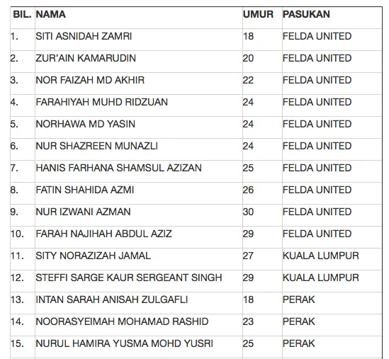 National futsal head coach Muizzudin Mohd Harris has announced his final 18-women squad who will be marching into the 2017 Kuala Lumpur SEA Games in August.