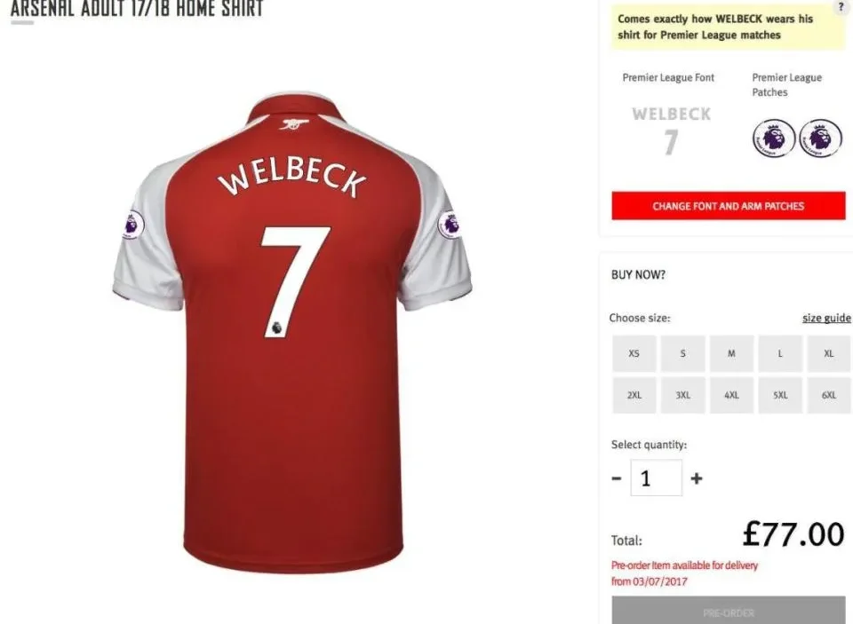 Paling mengejutkan apabila satu gambar tersebar ketika seorang penyokong mahu membeli jersi terbaru Arsenal yang menunjukkan penyerang Arsenal, Danny Welbeck akan menggunakan nombor 7 pada musim hadapan.