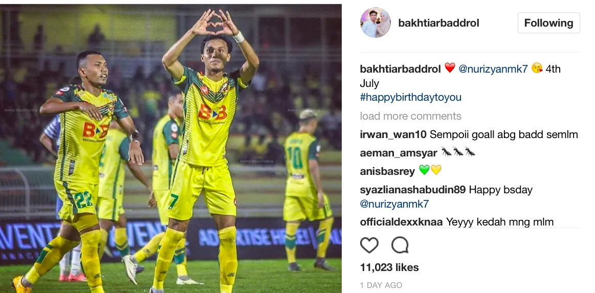 Yesterday, the Kedah midfielder took to Instagram to dedicate the goal to his wife, Nur Izyan, wishing her “Happy Birthday”.