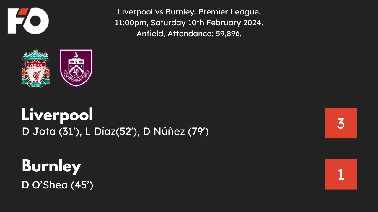 However, Burnley, who were seven points from safety, gave them a serious worry after Dara O’Shea’s incredible header at a corner just before halftime had put the hosts ahead thanks to Diogo Jota.