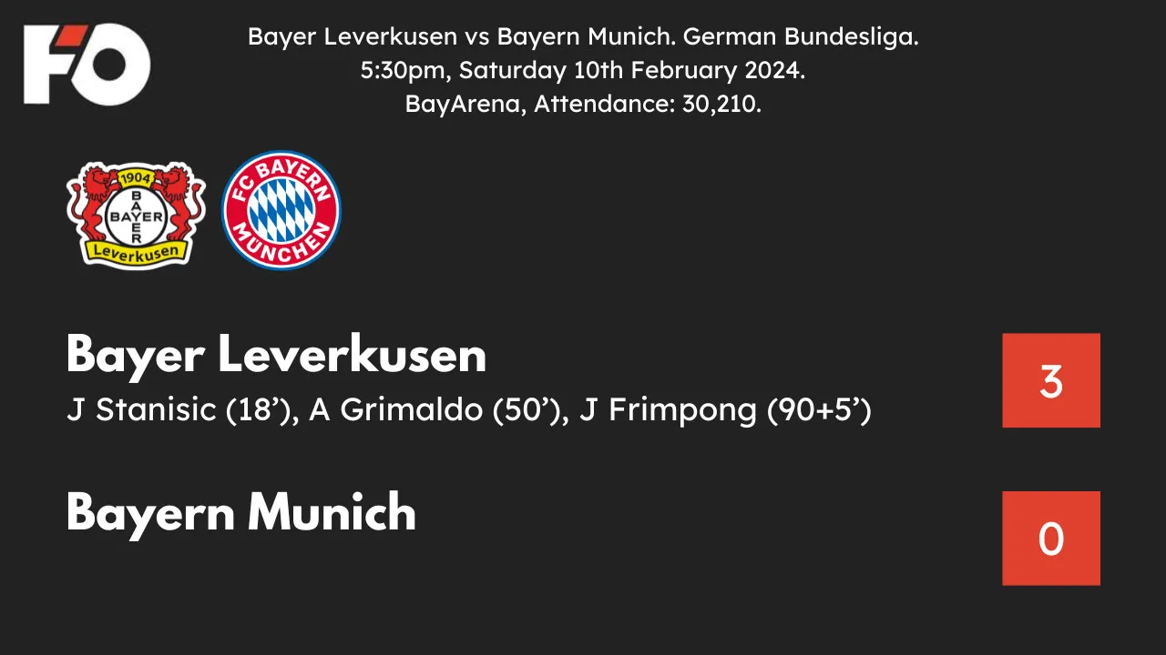 By defeating Bayern Munich 3-0, Bayer Leverkusen moved five points clear of the leaders in the Bundesliga title race.
