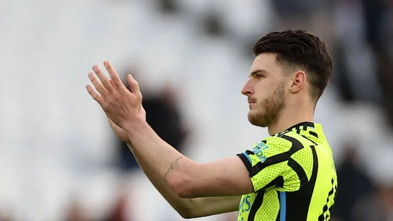 Arsenal defeated West Ham 6-0 at the London Stadium thanks to a long-range goal by Declan Rice, which sealed an incredible victory that kept Arsenal two points behind champions Liverpool.