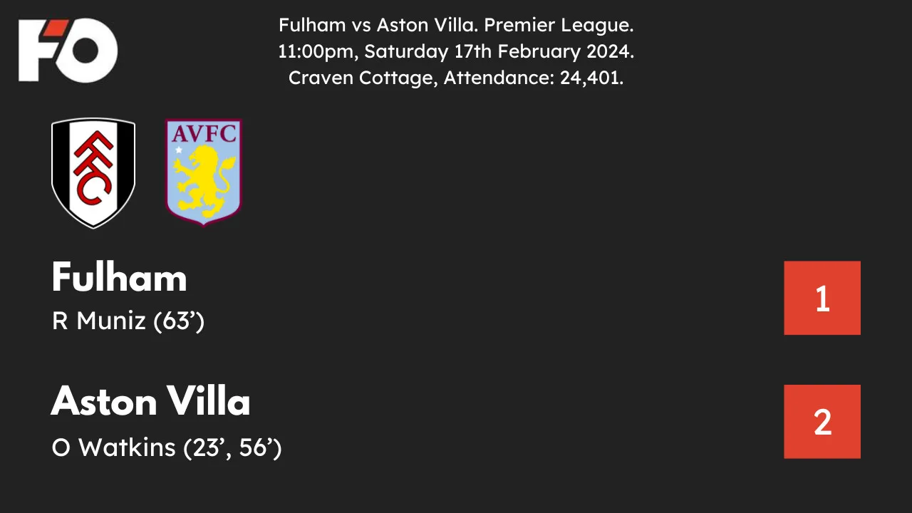 Fulham travel to Man United next on Saturday while Villa host Forest on the same day.