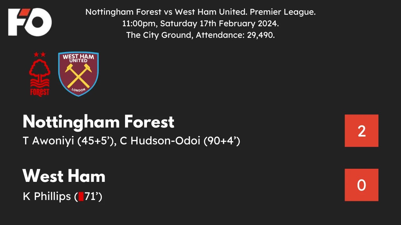 Forest travel to Villa next on Saturday while West Ham host Brentford on Monday.
