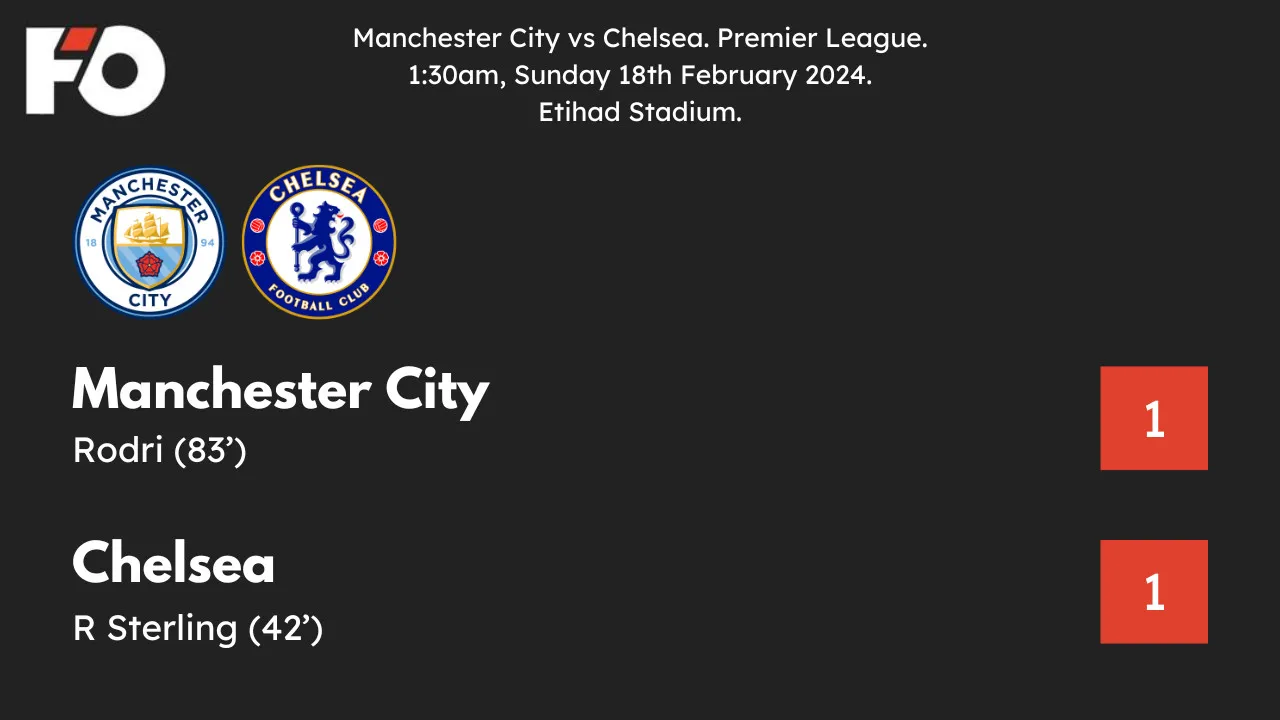 Manchester City and Chelsea drew 1-1 thanks to a late equaliser from Rodri, but the defending champions fell behind in the fight for the Premier League crown.