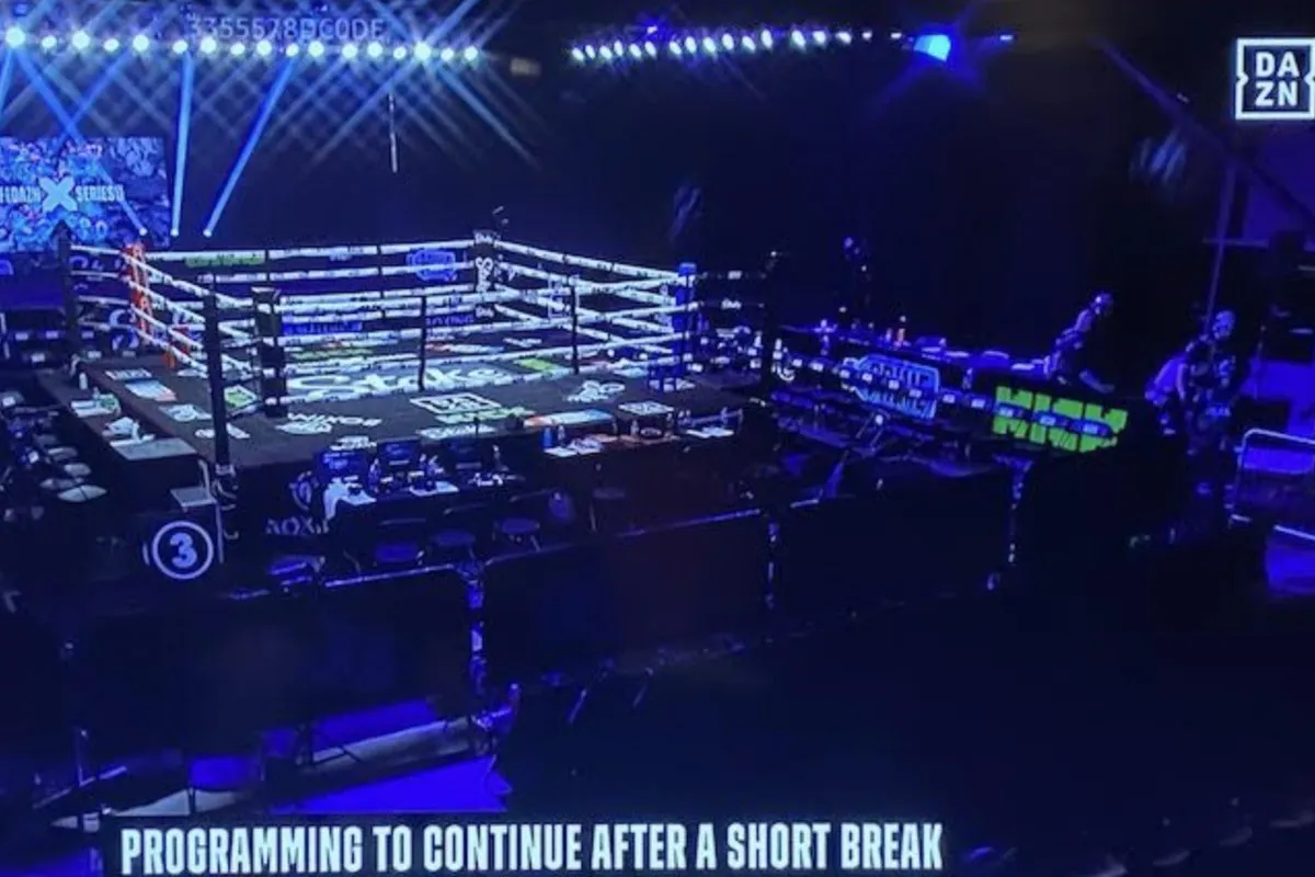 DAZN kept up its live feed of the arena during the delay for several minutes before turning to a promo that states “Sorry for the interruption. We’re working to bring your event back as soon as we can.”