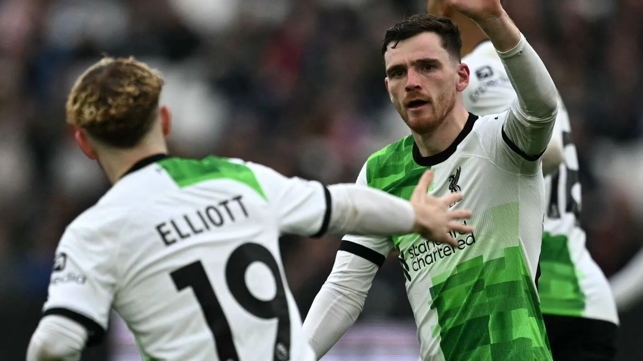 However, they fell behind in the first half as Jarrod Bowen (43), who scored for West Ham after a short corner, knocked the ball home. But three minutes after the interval, Andy Robertson (48) headed home to draw Liverpool even.