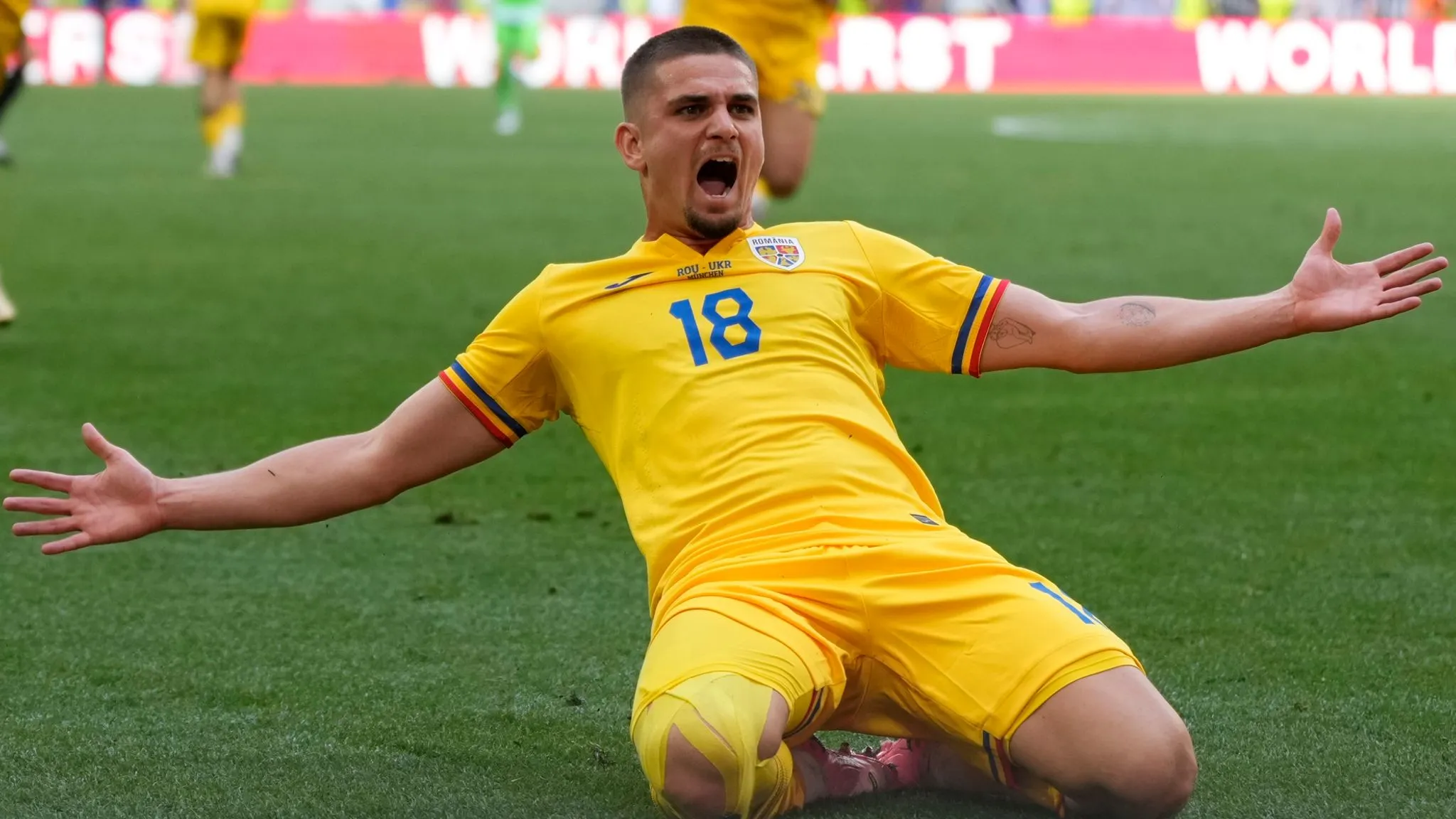 Four minutes later, Dennis Man crossed the ball for Denis Dragus to convert at close range, played narrowly onside by Artem Dovbyk’s outstretched boot to put Romania ahead 3-0.