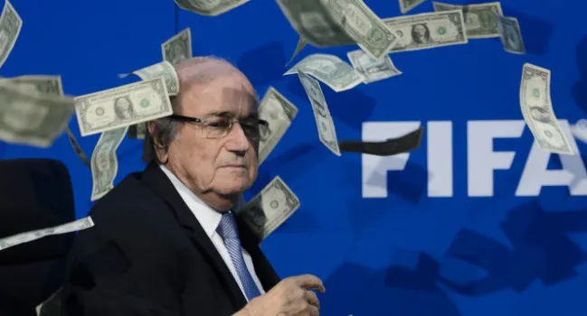 Football VIDEO: Sepp Blater showered with fake cash during press conference Notes after notes of fake money rained down on Sepp Blatter as they were thrown over by British comedian Simon…