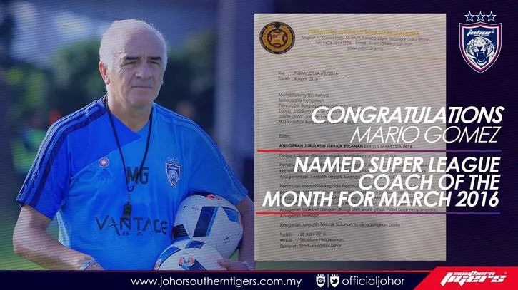 Football JDT’s Mario Gomez wins Coach of the Month award Johor Darul Ta’azim (JDT) head coach Mario Gomez has been selected as Coach of the Month for the month of March…